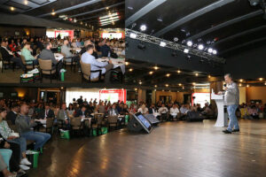 У головному залі на початку конференції з привітальним словом до учасників виступив модератор Сергій Євтушенко, засновник роздрібної мережі «Червоний маркет».